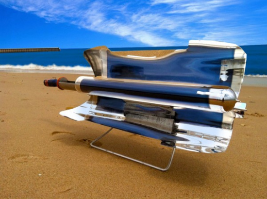 该款烧烤用具名为“GoSun”,发明者舍温表示,他某次移走天台的太阳能热水系统时,发现板下的水管即使在阴天依然保持高温,他忽发奇想把一条热狗肠放进去,10分钟后,热狗肠完全煮熟,他于是把这技术套用在煮食工具中。