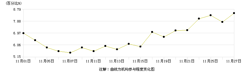 机构参与度:机构参与度为11.01%,属于轻度控盘