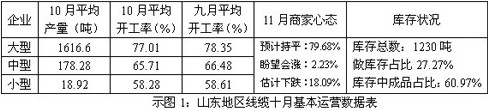 如示图1数据显示:十月旺季惊现下滑趋势,大中小企业开工环比下滑区间1.3%-1.7%,总平均开工率是63.87%,"金九不金,银十不银"严重打压了商家的积极心态。某企业张先生表示:"今年毫无旺季可言,不亏本、不倒闭已经算幸运的,开工率依旧提不上去,因为市场需求疲软现象依旧未得到改善,也没有任何好转迹象,加之货款拖延及贷款收紧影响资金面未好转,双层压力导致订单旺季平平而过,后期很渺茫。" 库存方面大部分商家为减少风险,依旧采取按单采购为主。昔日十月开工率"旺火缠身",如今却"寒意连连",线缆企业经营状况困难重重,出现下滑现象也实属正常。