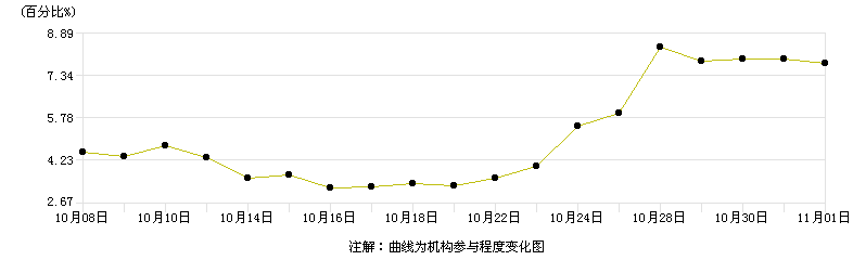 机构参与度:机构参与度为7.79%,属于轻度控盘