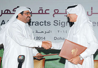 卡塔尔能源与工业部长Mohamed bin Saleh Al Sada与相关企业代表签署合作协议。