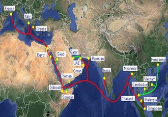 公司在声明中称,将加入到包含16个国际服务供应商的联盟中,建设和维护亚洲-非洲-欧洲-1(AAE-1)海底电缆系统。海底电缆连接香港、越南、柬埔寨、马来西亚、泰国、缅甸、印度、巴基斯坦、阿曼、阿联酋、卡塔尔、也门、吉布提、沙特阿拉伯、埃及、希腊和法国。