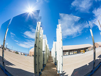 反射镜,也称日光反射装置,积聚太阳光一直到达高459英尺的塔顶,在那里,水变为水蒸气,直接为动力涡轮及提供驱动力。系统产生的热量十分炽烈,可以融化在飞行的鸟类的羽毛。