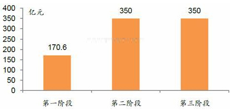图表1:各阶段电网智能化年均投资规模(单位:亿元)