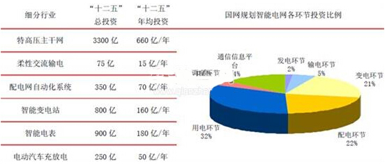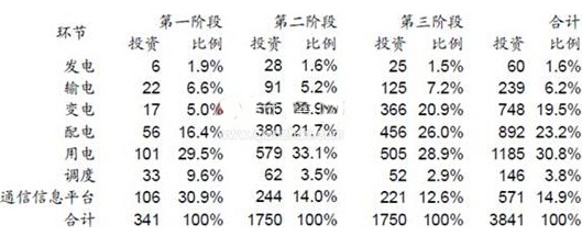 (2)第二阶段(2011-2015年)电网总投资预计为15000亿元,智能化投资为1750亿元,年均电网投资350亿元,占总投资的11.7%;