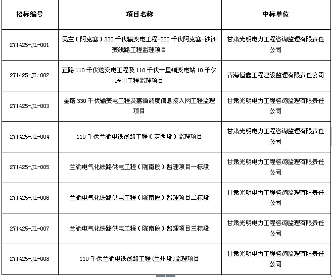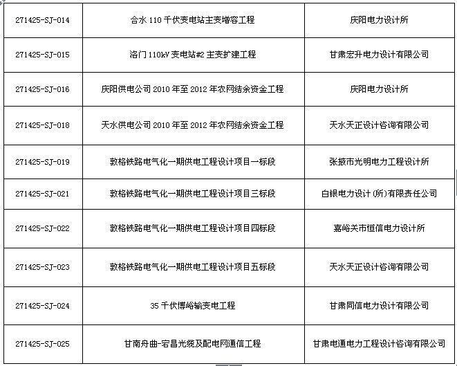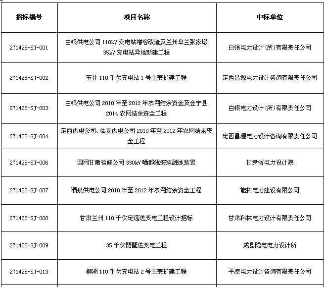 国网甘肃电力2014年第五批服务类招标采购中标公示