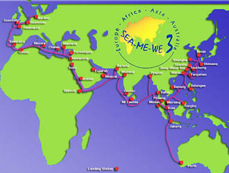 Sea-Me-We 5海底电缆全长20000千米,连接法国到新加坡,沿途登陆意大利、埃及、阿拉伯、吉布提、也门、阿联酋、阿曼、巴基斯坦、印度、斯里兰卡、孟加拉国、缅甸、泰国、马来西亚、印尼和新加坡。