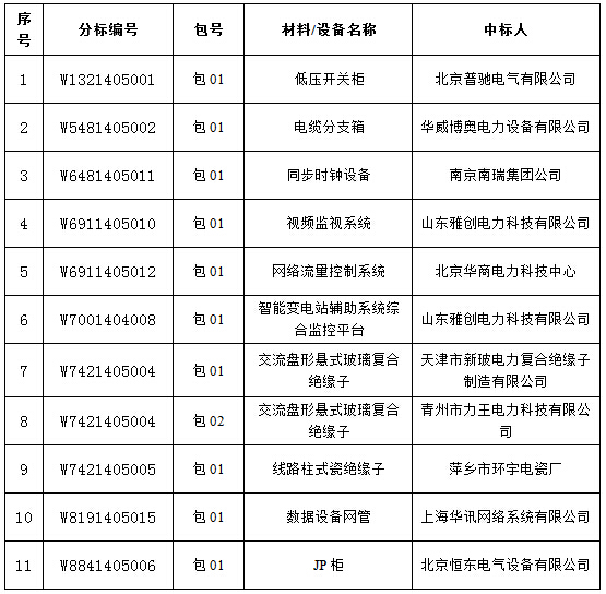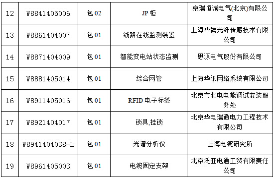 国网北京电力公司2014年第五批物资招标采购的评标工作已结束,经评标委员会评审,将评标结果公示如下:
