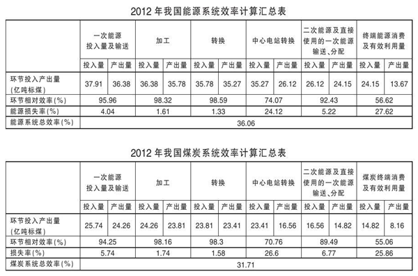 《报告》指出,我国2012年能源系统投入的能源总量扣除在一次能输送、加工、转换、中心电站转换、终端消费等环节的损失量后,能源系统的综合有效利用率为36.06%。其中,煤炭作为我国能源系统的主力,2012年的综合有效利用率为31.71%。