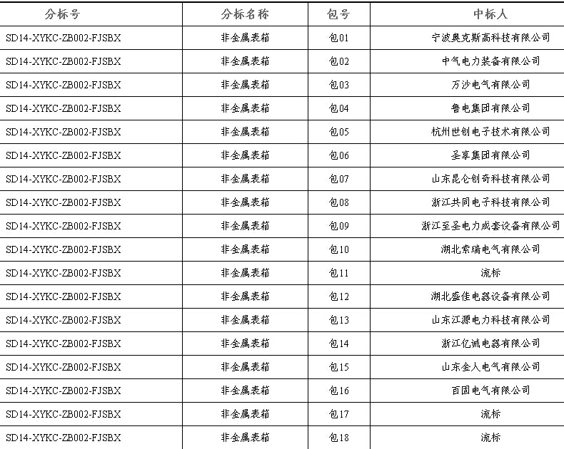 国网山东电力公司2014年第二批电网物资协议库存招标采购项目的中标候选人公示活动已经结束。现将中标人名单公告如下: