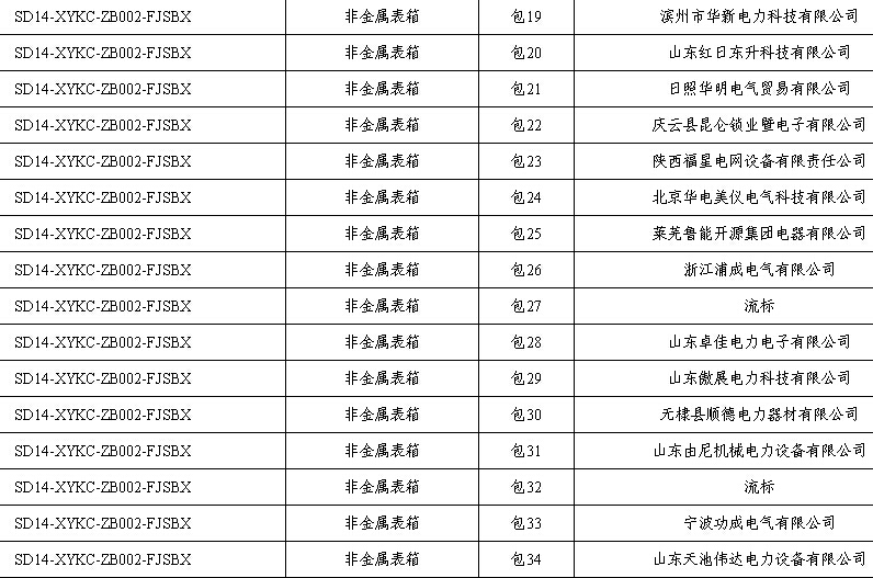 国网山东电力2014年第二批电网物资招标采购项目中标公示