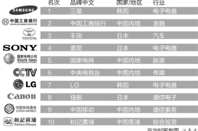 ■2013年《亚洲品牌500强》排名前10品牌
