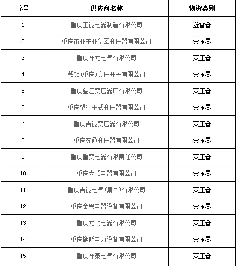 近期未参加过资质能力核实的10kV配(农)网协议库存供应商名单如下: