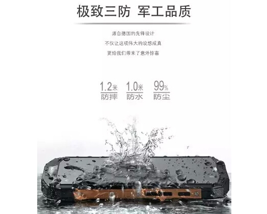 从图上看,三一重工该手机在外形方面属于典型的三防风格,而且该机也确实支持三防。号称能实现1.2米防摔、1米防水以及99%防尘。作为一款三防产品,其售价为1699元。
