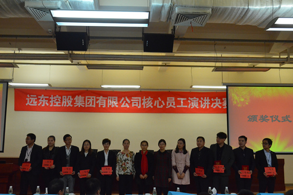 2014年11月7日下午,由远东大学组织的“远东控股集团核心员工演讲大赛”在远东大学和谐学堂圆满落幕。此次大赛邀请到范道中小学骨干教师,远东控股集团董事局主席、首席执行官、远东大学校长蒋锡培,集团首席行政官、远东大学执行校长周东佼,集团董事、董事局秘书蒋承志,开发服务部总监蒋婧等组成评审团参加评审,比赛进行现场评分,即刻统计分数并公布。