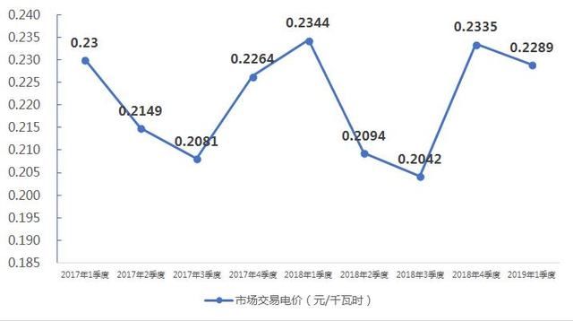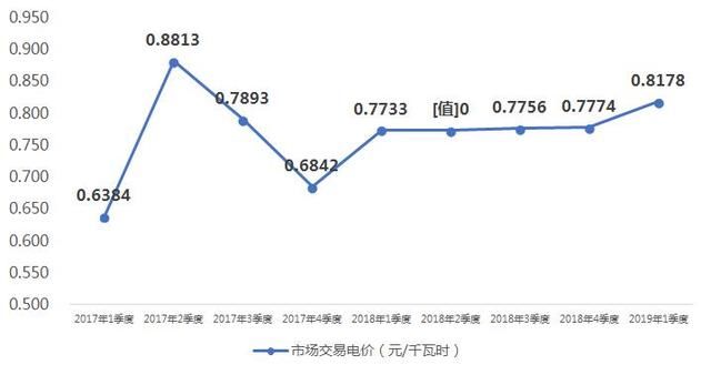 图10 2017年-2019年1季度光伏市场交易电价走势图