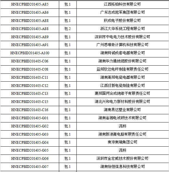 国网湖南省电力第五批物资集中招标项目中标公示