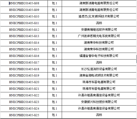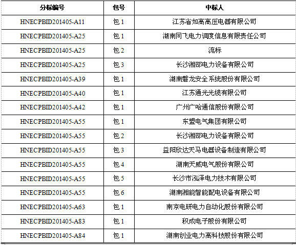 国网湖南省电力公司2014年“总部统一组织监控,省公司具体实施”第五批物资集中招标项目的中标候选人公示活动已经结束。现将中标人名单公告如下: