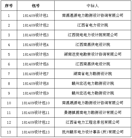 一、2014年第五批电网建设工程设计招标采购项目中标结果