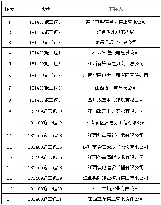 “总部统一组织监控,省公司具体实施”国网江西电力公司2014年第五批电网建设工程招标采购项目的评标工作已结束,经招标领导小组批准,并在网站公示,已确定中标人,现将招标结果公告如下: