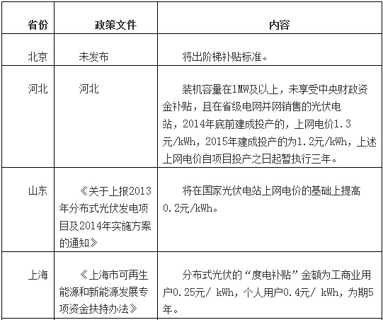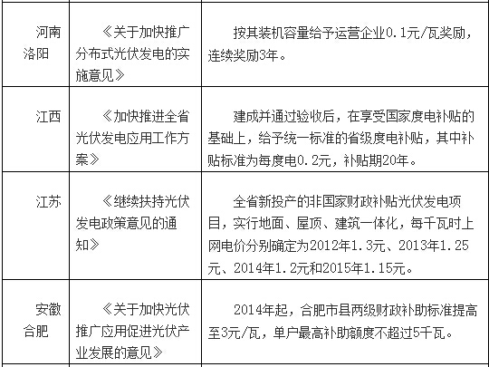 面对8吉瓦的分布式光伏发展目标,上海、安徽、江西近日分别出台了扶持分布式光伏有序开展的政策文件。这也是继浙江、山东等之后,对分布式光伏再抛出政策“橄榄枝”。各地扶持政策涵盖了并网、补贴等多个方面进行扶持。记者将从补贴这一角度,为大家梳理北京、河北、山东、上海、河南、江西、江苏、安徽、浙江9个省份的政策。