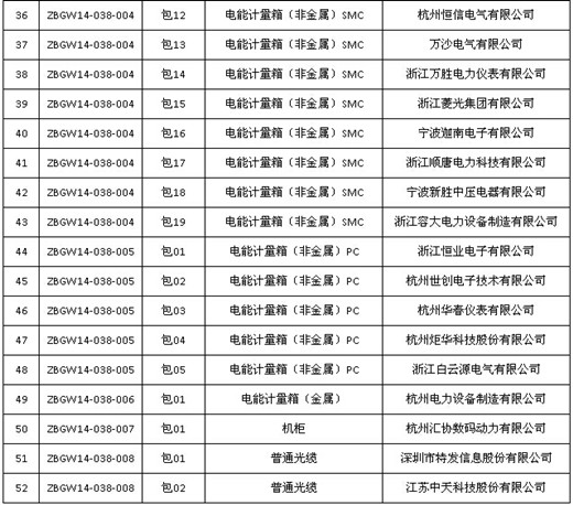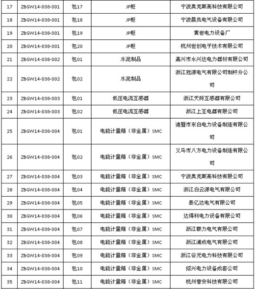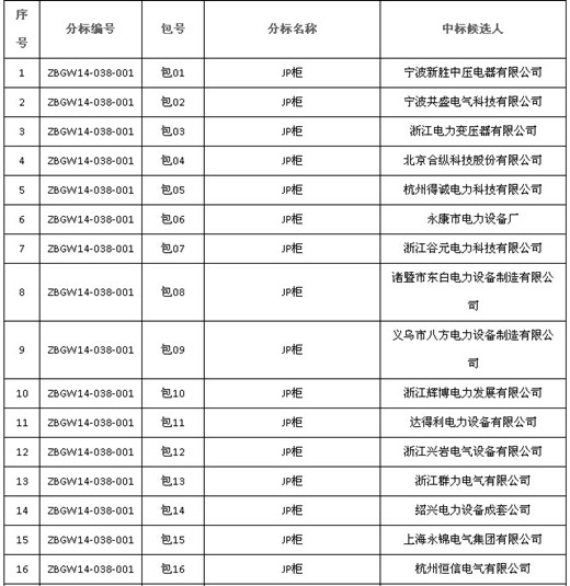 国网浙江电力公司2014年第三批物资类协议库存招标项目的评标工作已结束,经评标委员会评审,将招标结果公示如下: