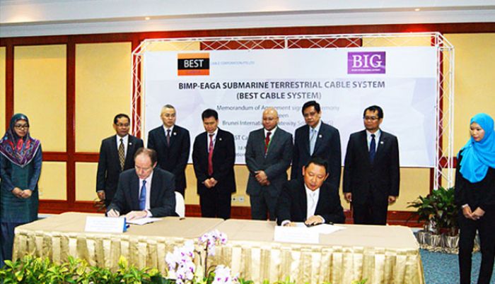 新海陆电缆系统的合作备忘录由文莱国际门户公司(BIG)和BEST电缆私有公司(BCC)签署。合作备忘录由BIG首席执行官John Murray和BCC首席执行官Jasmi Adenan Thien签署,由文莱外交通商部常务秘书和通信部常务秘书见证。