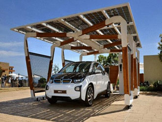 宝马旗下设计所加州的Designworks USA中心发布一则针对i系列车型太阳能充电专用的车棚。并已在Malibu展开运作工作。