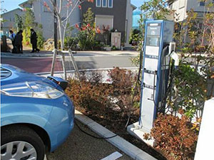 在松下兴建的智能城市中,居民使用充电桩给电动汽车充电