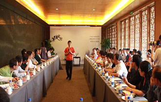 阿里巴巴集团首席运营官(COO)张勇与理事们分享了《电子商务到商务电子化》,阿里巴巴集团首席技术官(CTO)王坚分享了《从IT到DT》。阿里巴巴集团首席执行官(CEO)陆兆禧、小微金融服务集团首席执行官(CEO)兼阿里集团首席人才官(CPO)彭蕾等高层也参加了交流座谈并就企业文化、人才管理等回答了理事们的提问。陆兆禧表示,阿里巴巴强调本能地决定、理性地分析、感性地表达,这是阿里巴巴文化的一部分。