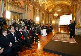 秘鲁总统奥良塔·乌马拉昨日在首都利马出席220千伏莫约班巴-伊基托斯高压输电线项目签约仪式。