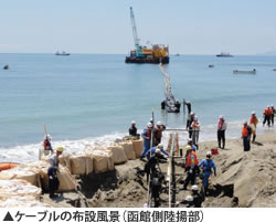 2009年,住友电工旗下子公司J- power systems(以下简称为JPS)因日本电源开发株式会社承接连接日本北海道和本州的约43km的海底电缆工程项目。该项目采用的是J- power systems公司和日本电源开发株式会社共同研发的直流XLPE电缆。将以前的交流XLPE电缆直流后使用,因空间电荷积累现象极性反转时(根据运用情况调换电压的正负极)存在绝缘性能低的问题。JPS成功研发全球顶级性能和通用性的绝缘材料应用于该项目中。此次,该公司承接的XLPE电缆的电压为250KV,这种电缆是全球首个可反转极性的直流XLPE电缆。该项目已经完成电缆敷设和完工测试,于2012年12月开始投入使用。全球最高电压直流XLPE海底电缆实际投运得到全球电缆产业的关注,住友电工表示期望今后该公司生产的海底电缆能更广泛的运用于国内外输电项目中。