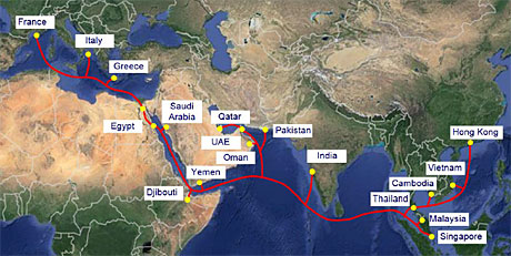 据悉,该海缆系统将连接阿联酋,香港,越南,马来西亚,新加坡,泰国,印度,巴基斯坦,阿曼,卡塔尔,也门,吉布提,沙特阿拉伯,埃及,希腊,意大利和法国,全长25000千米。