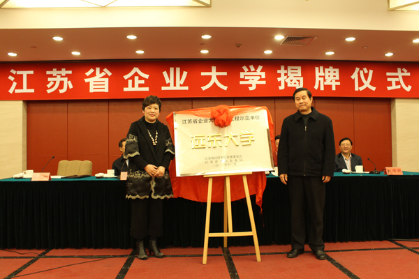 据了解,江苏省示范性企业大学创建工程是由江苏省经信委、中小企业局等联合推动的一项企业人才培养新政。目前该奖牌仅授予了苏宁大学、雨润大学、徐矿大学、海澜商学院等11所企业大学。