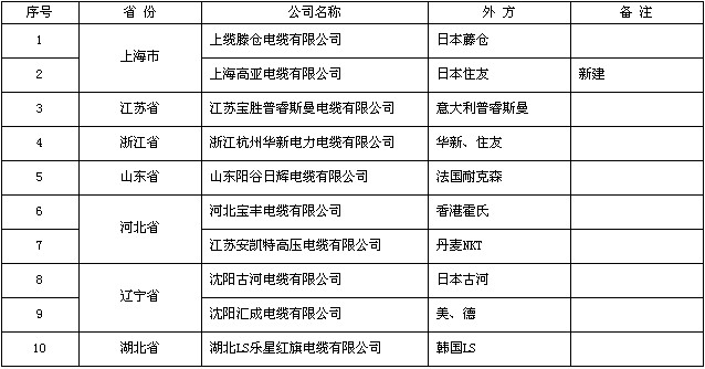 截止目前,在华外资及合资HV/EHV XLPE电缆企业共有10家,除了最近杭州华新电力电缆公司披露亏损之外,尚未见其他外资及合资企业亏损的信息。在外资及合资企业中,沈古、宝胜普睿斯曼、江苏安凯特和上缆藤仓已是稳定的供应商。LS乐星红旗和阳谷耐克森则雄心勃勃,以其自身的优势及对中国市场策略的调整和逐步适应,已得到电网公司认可,并取得可喜成效。